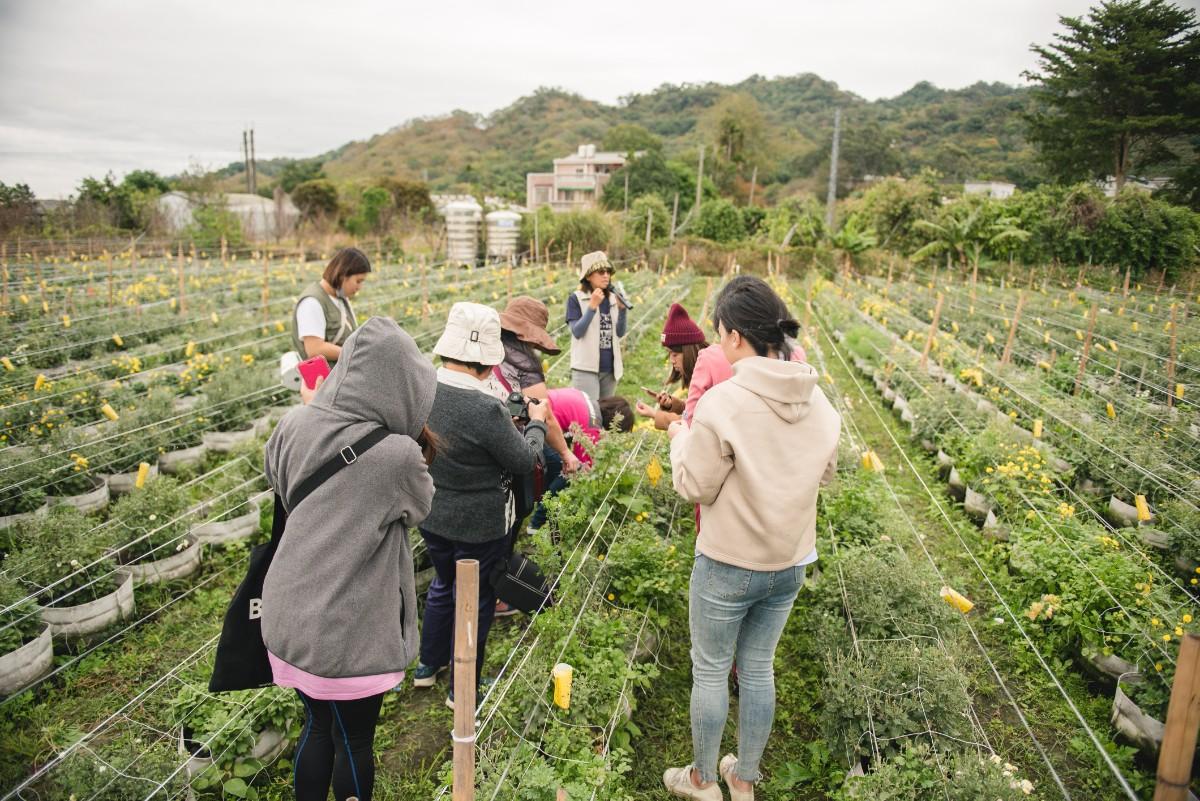 沿著穿龍圳邊走,緩緩清澈的水流,心也跟著靜下來了,十分舒爽。經過公館三寶-紅棗、芋頭、杭菊 農園,正值冬天休耕樹木光禿禿,但小小的杭菊綻放起來也很美麗。來這裡除了可以吃到美味的田園料理,也有很棒的農園導覽和體驗活動喔!今天我們就下公田體驗採蘿蔔,因為每年冬天稻米收割後,就是蘿蔔的栽種期啦~