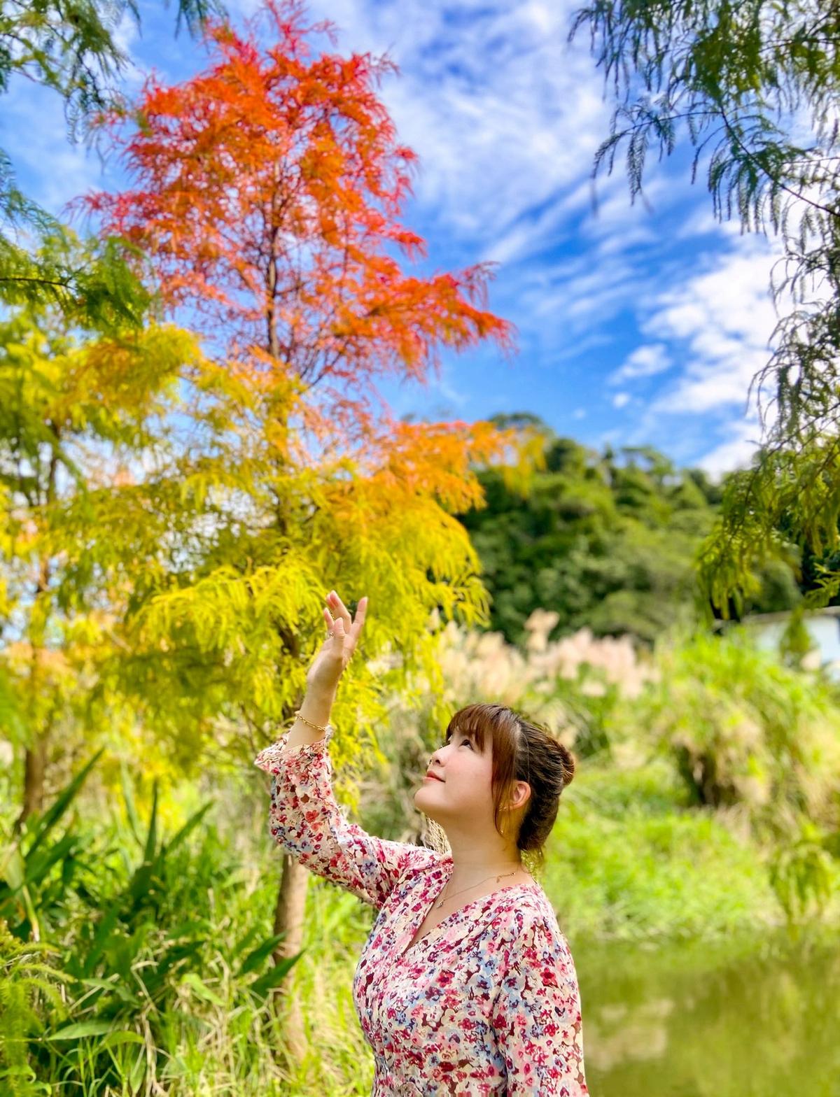 才想到自己前陣子去大溪花彩節時也有陪著 @bencat0821 順道去朝聖落羽松景點「月眉人工濕地公園」。