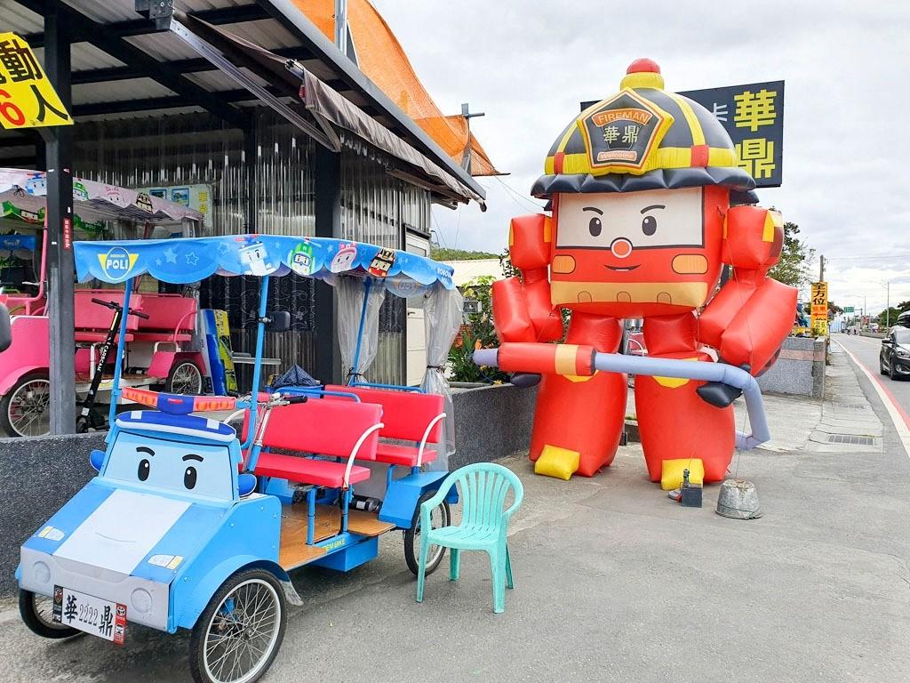 華鼎自行車出租店有小朋友最愛的🤖Poli 波力救援小英雄造型,文內有優惠券出示手機照片就可以使用囉💕
