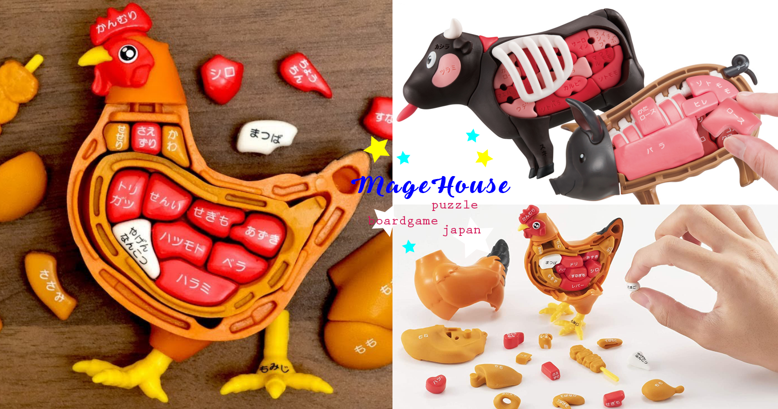 日本的玩具大廠MageHouse推出的拼圖,兼具益智學習與獵奇構造的動物與魚系列,將生物內的肉塊與骨骼以Q版的色塊真實還原,將原本有些殘忍的畫面,變得幽默詼諧,在每一塊部位標上名稱,讓你邊拆邊學習肉品知識,還能了解專業日文單字,除了拆卸重組的樂趣,還會依據不同的品項,搭配二合一的玩法與道具,讓你拼拼湊湊玩不膩!