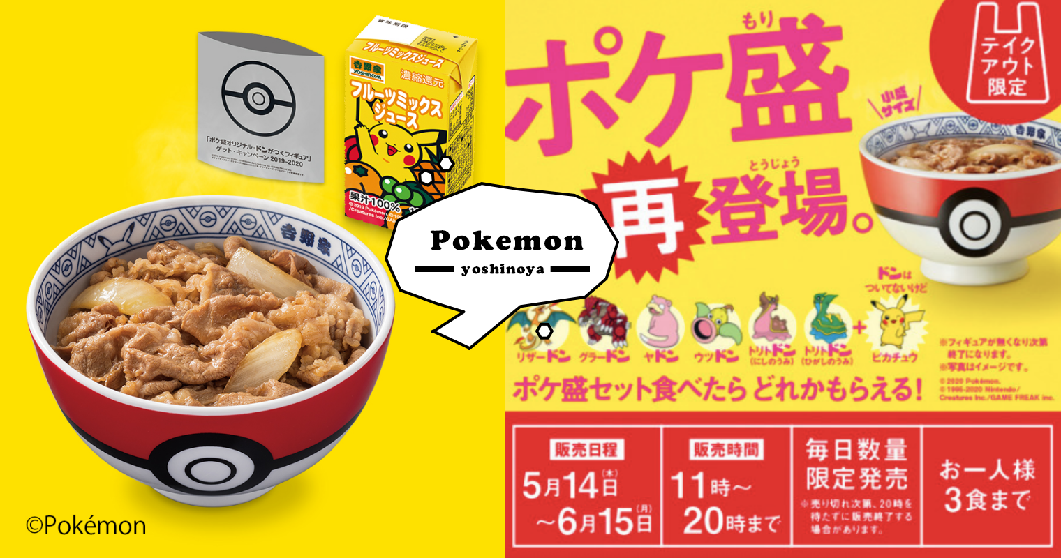 2019年日本的吉野家與寶可夢合作,推出了神奇寶貝球的飯碗,超級可愛!此外還有推出了寶可夢的套餐,看來寶可夢已經侵入到美食界裡啦!2020年吉野家再出發!ポケ盛又重出江湖,雖然現在不能飛日本,但看一下還是很療癒的啊~