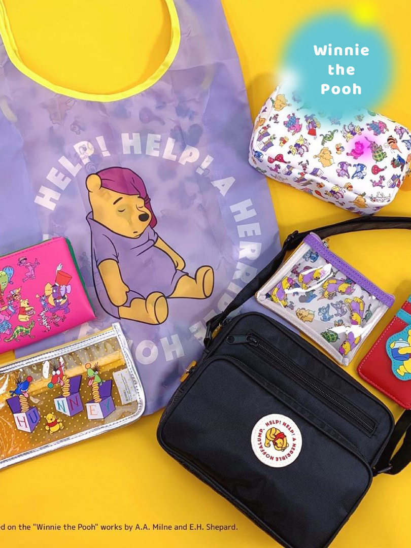 女生最需要的化妝包也不馬乎,上面有很多可愛的卡通圖案,在中間也藏了許多的小熊維尼,這麼可愛的設計誰能不買單呢?