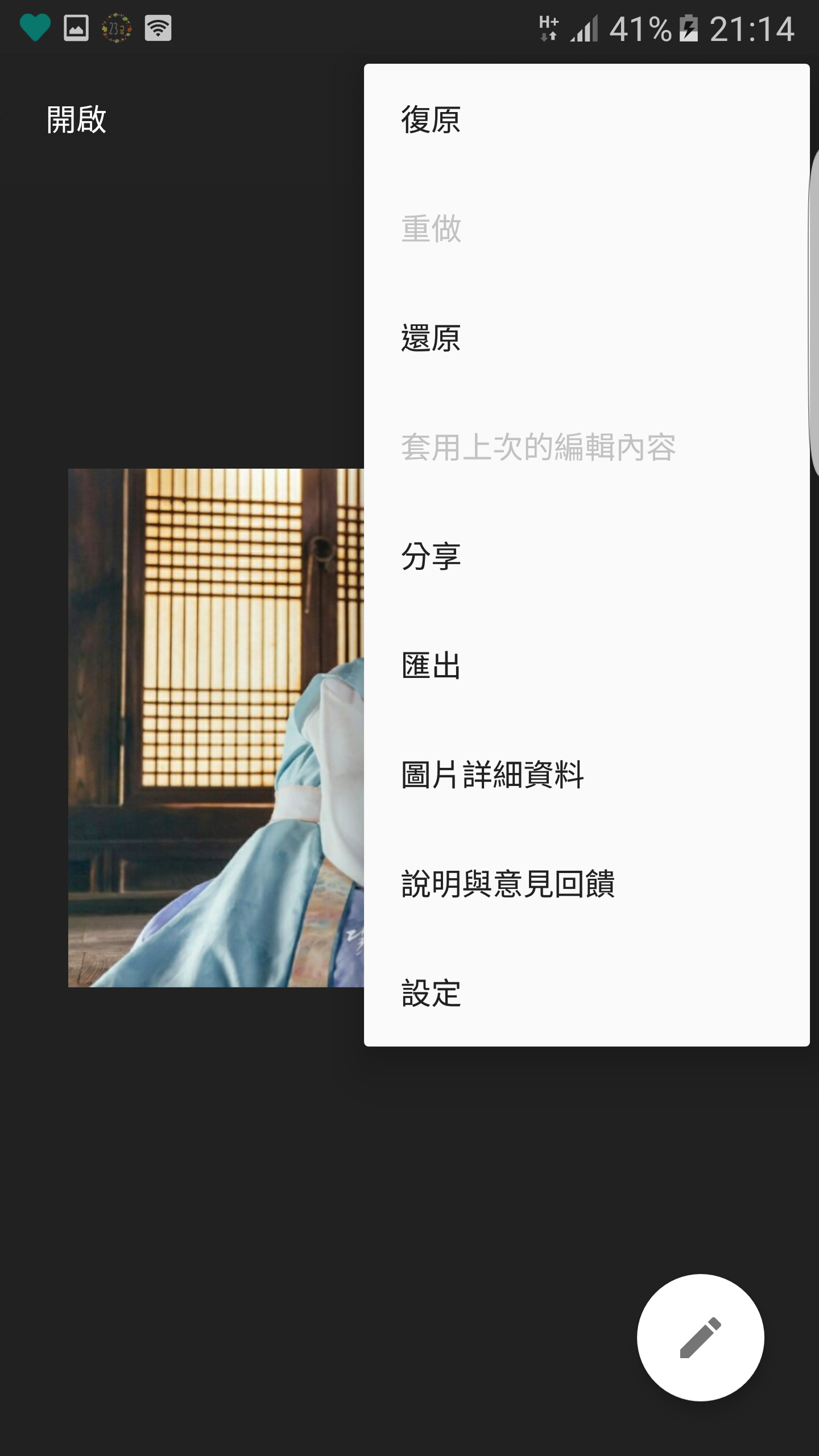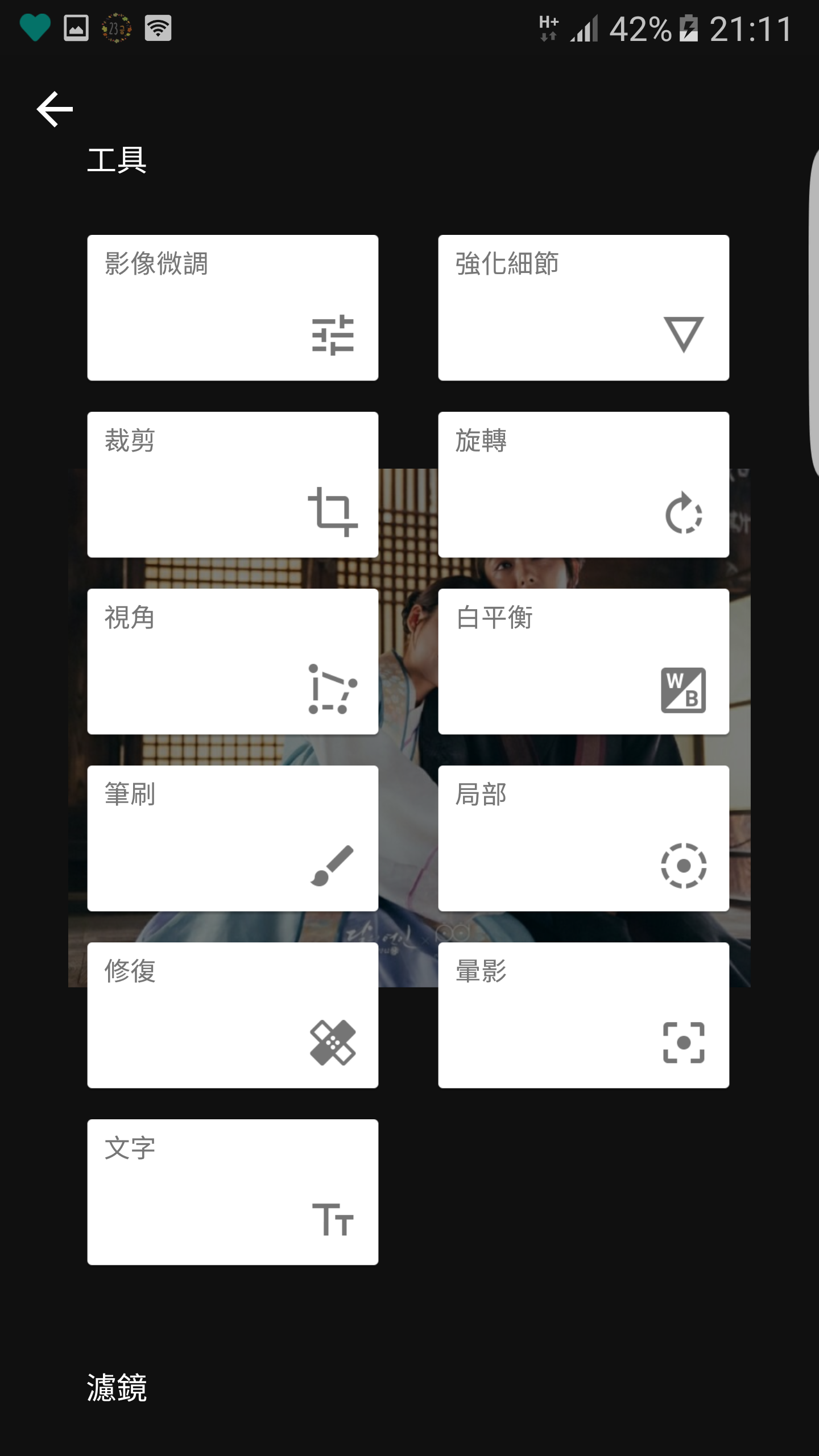 開啟圖片之後再點選右下角的鉛筆進去就可以開始編輯囉,可以看到上面一整排都是工具,下面一排是濾鏡,讓你一個APP專業的工具和網美的濾鏡都能一次用有!