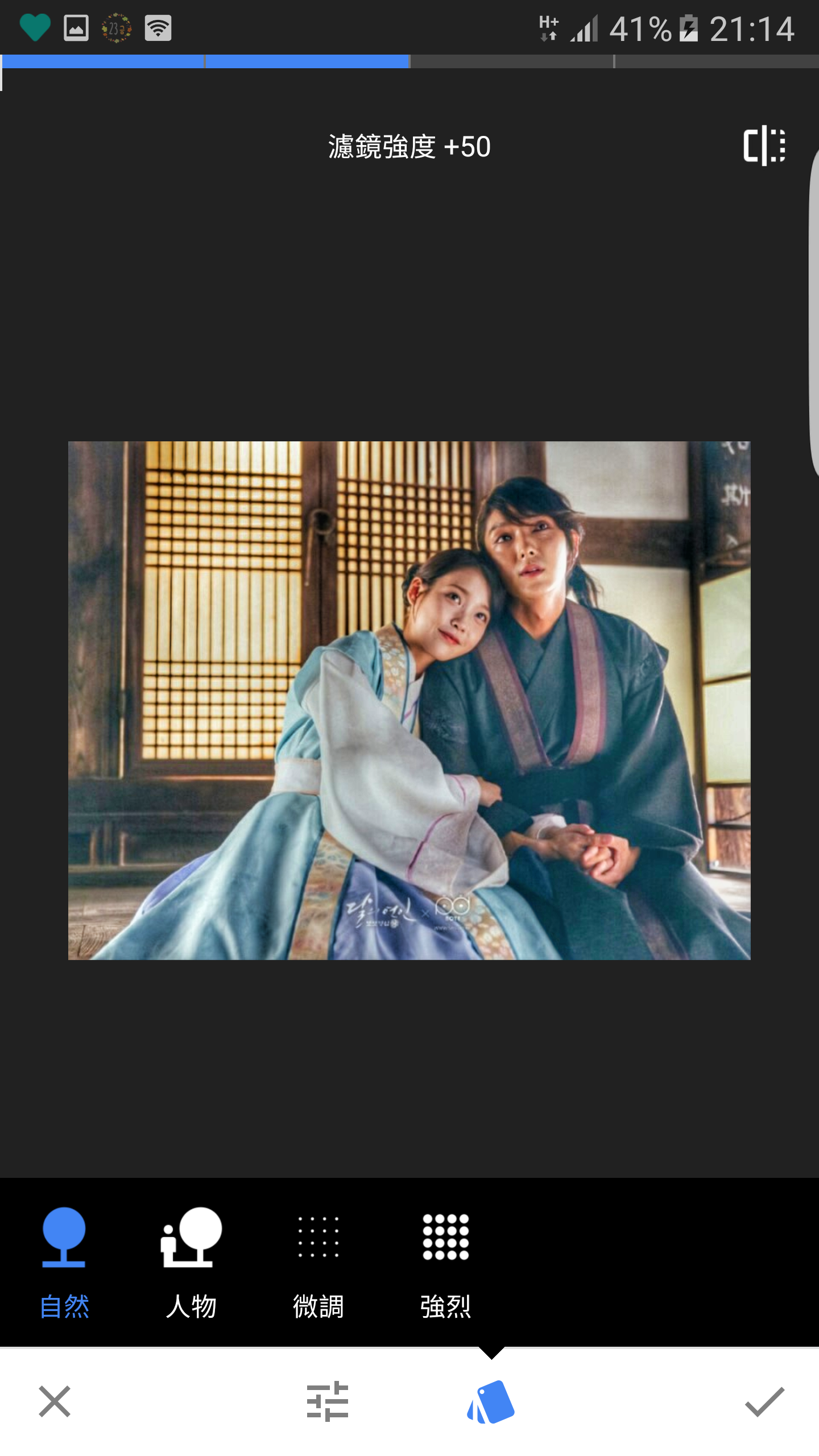 再來要嘗試濾鏡的功能~這次挑戰的是「HDR圖像」,點進去之後,可以看到APP會自動幫你調整濾鏡的強度,這些都是可以自己手動再調整的,選項有自然、人物、微調和強烈,都能讓你的濾鏡更凸顯你要的主題呢!