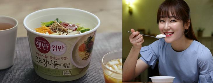햇반컵반是由真空包裝白飯和醬料包組合而成,去年由徐玄振代言湯飯系列,有海帶湯飯、黃魚湯飯、豆腐湯飯、雪濃湯飯等,裡面的內容物真材實料,豆腐湯飯裡真的有豆腐cp值超高!今年則是由朴寶劍代言蓋飯系列,蔬菜拌飯、辣咖哩飯、炸醬飯、大醬飯..等等,超多種口味每天都吃超過一周也不會重複!