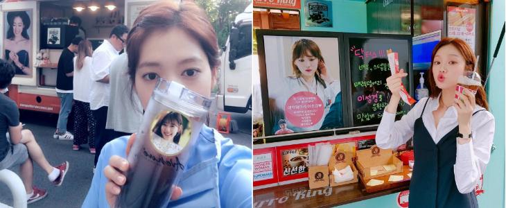 李聖經也不遑多讓,除了有代言品牌蘭芝送上的應援餐車之外,好友崔泰俊也送上吉拿棒咖啡餐車替她加油!