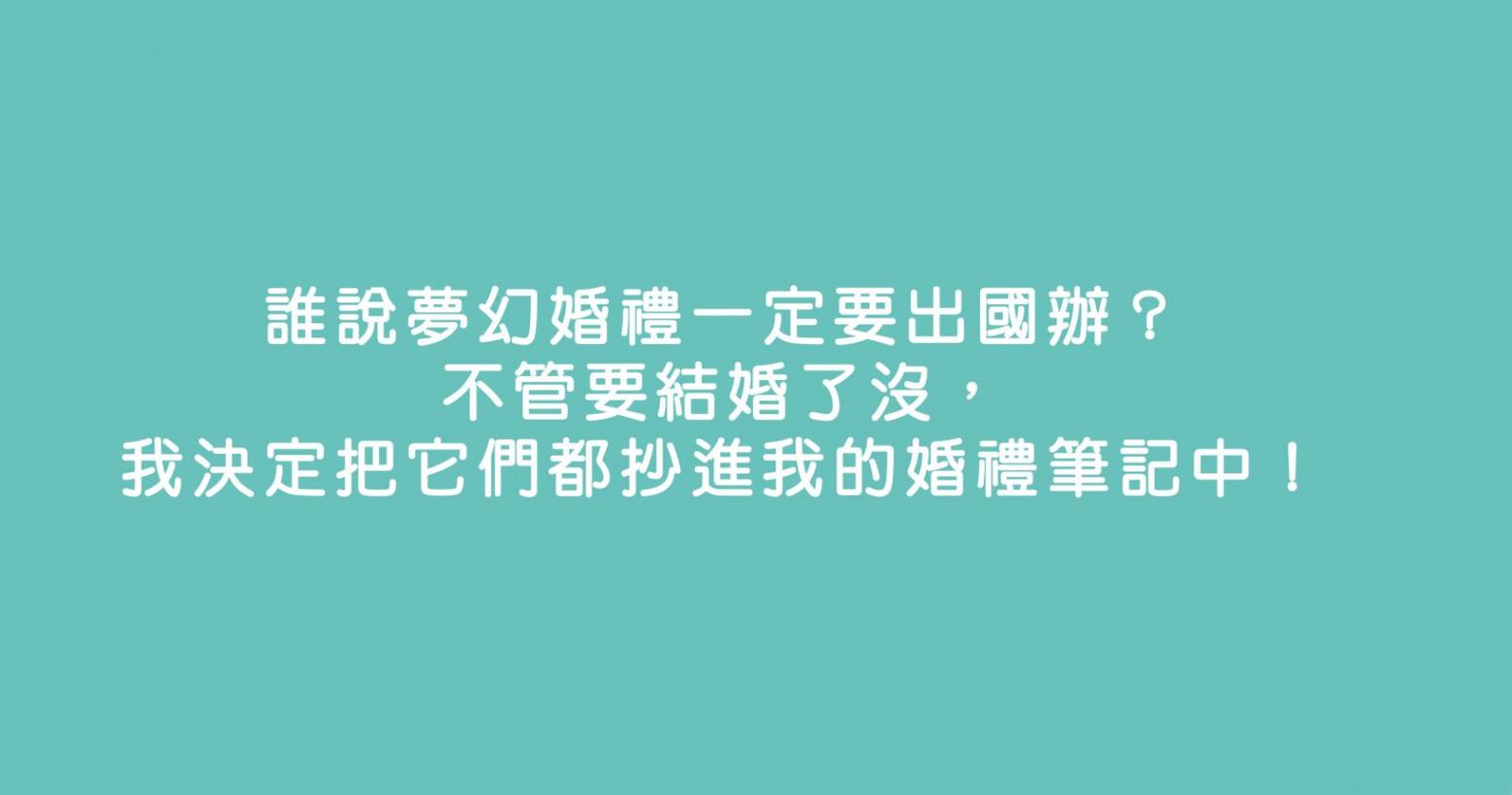 誰說夢幻婚禮一定要出國辦?不管要結婚了沒,我決定把它們都抄進我的婚禮筆記中!