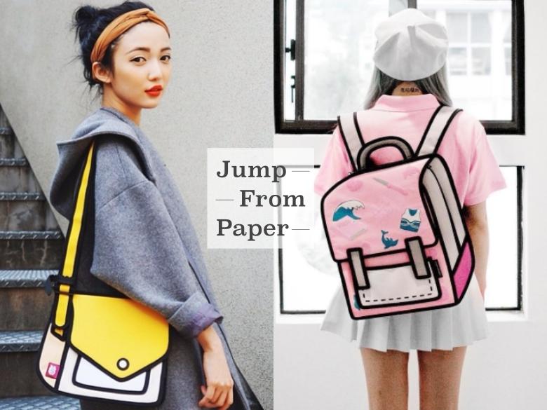 無聊的包包可以先丟了!走在很前面的女孩們應該都知道JumpFromPaper這個牌子吧?就算不知道,也該看過這個包包吧!因為這個牌子的包包實在太有特色了,外型就是一個平面的包包,實際上卻是超級正常實用的包包啊!超鬧玩心超重的!就算不能當少女漫畫中走出來的美少女,至少可以用像從漫畫搬出來的包包吧?妳不要以為這種包包都是小學三年級的人在背的,這個品牌可是連續兩年都代替台灣參加巴黎時尚週喔!來看看有哪些名人背,妳就知道他其實猛猛的了~
