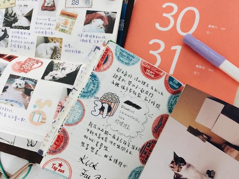 搭配著不同的貼紙和不同顏色的墨水,寫下屬於自己的故事,有時候也會貼上收到的卡片或是畫下因應節慶的小圖示,這種本子就是會讓人很想時不時翻一下回憶過往啊!