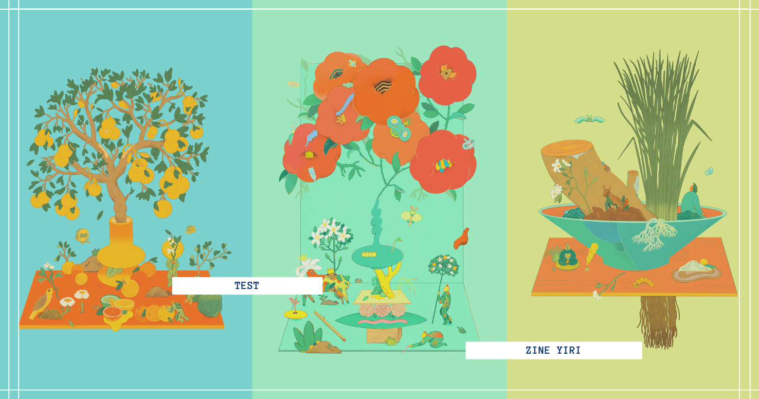伊聖詩 20 週年,為主題「種一個願望」邀請到台灣插畫家川貝母,創作了 6 幅主視覺。川貝母融合形態各異的花果草樹,甚至毫不違和地結合了植物、動物與人的形體,全部收攏進一個盆景之中,形成一片看似無限奇想,其實和諧而多樣、生機無窮的園地。每個人的心中都是一塊的土地,然而我們自己能夠為自種下一顆種子,待它茁壯發芽,成為那片話果草數