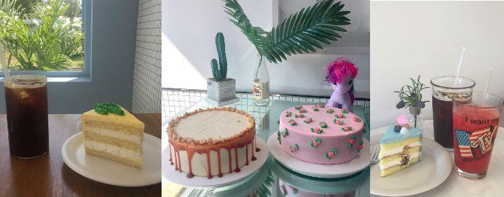 而且店裡也有一個蛋糕的造型就真的非常可愛。錶面上是全黃色的奶油,再放上店主自己親手擠出來的仙人掌造型裝飾喔,蛋糕顏色看起來就非常鮮豔啊。