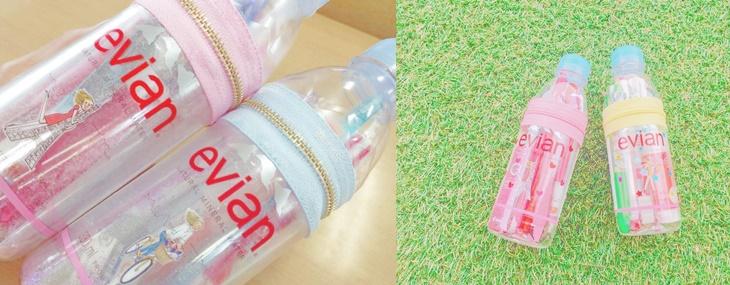 日本男男女女最近迷上了evian的寶特瓶筆袋,由於evian的寶特瓶瓶身本身就設計的簡單有質感,要拿來改裝真的是非常不費力啦!
