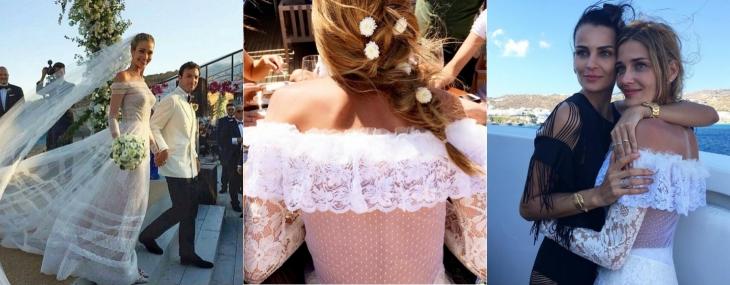 婚禮儀式結束之後維密天使名模安娜碧翠茲巴洛絲(Ana Beatriz Barros)換上Naeem Khan的民族風流蘇短禮服,襯托希臘的好天氣,讓她看起來熱情又迷人。