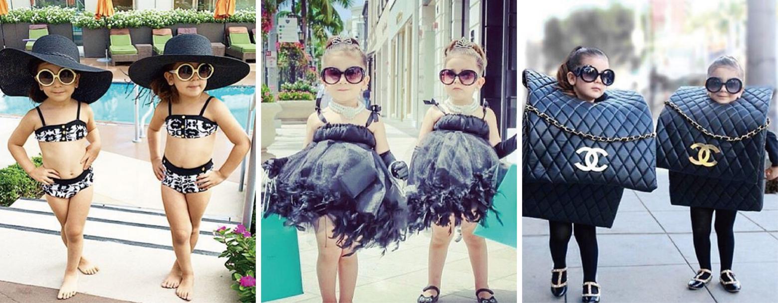 這兩位時尚雙胞胎姊妹Bella & Chloe已經快要紅片整個時尚圈啦!小小年紀就擁有那麼高的時尚品味,從高衩泳衣到經典CHANEL套裝、2.55包都已經是她們拿手的穿搭法了,而且還受到各個時尚界達人的青睞,連時尚名媛Kim Kardashian也忍不住分享了她們的穿搭照,為什麼她們會一夕爆紅呢?! 原因是因為她們為了她們的生日派對邀請卡,穿上了電影《蒂凡尼的早餐》中奧黛麗赫本扮演的荷莉·葛萊特利的服裝,坐在羅迪歐大道上拍攝了一系列的照片,而造成大家的熱烈迴響,而當然這兩位時尚雙胞胎姊妹的幕後最大功臣,也就是她們的有位做過娛樂記者又是節目製片人的媽媽Lucy Abir,快來看看這位時尚媽媽幫她的女兒們做過了什麼樣的造型吧!