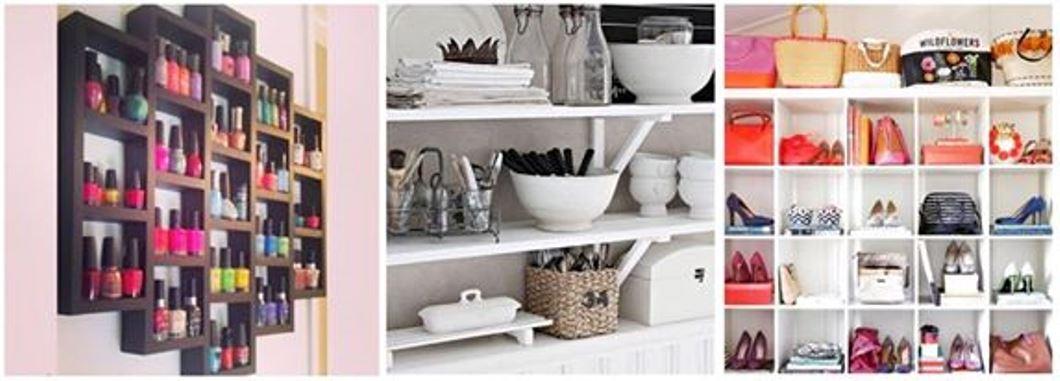 如果指甲油很多的女孩,也可以學學沙龍店的方式,在牆上釘出一個架子來擺放指甲油,不只省空間,五顏六色的紙解由看起來真的就像是一個藝術品呢!