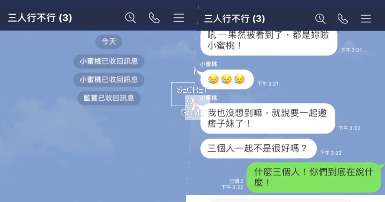 沒錯~就是大家小時候都玩過的爆爆王之中的角色,這次出現了藍寶、小蜜桃、痞子妹這三個孰為人知的角色,居然流傳出他們三個的私人line對話,從一開始以痞子妹的第一視角,能先看到另外兩人私訊傳錯到三個人的群組,還立馬緊張收回,聰明的痞子妹也馬上截圖下來起了疑心啊~