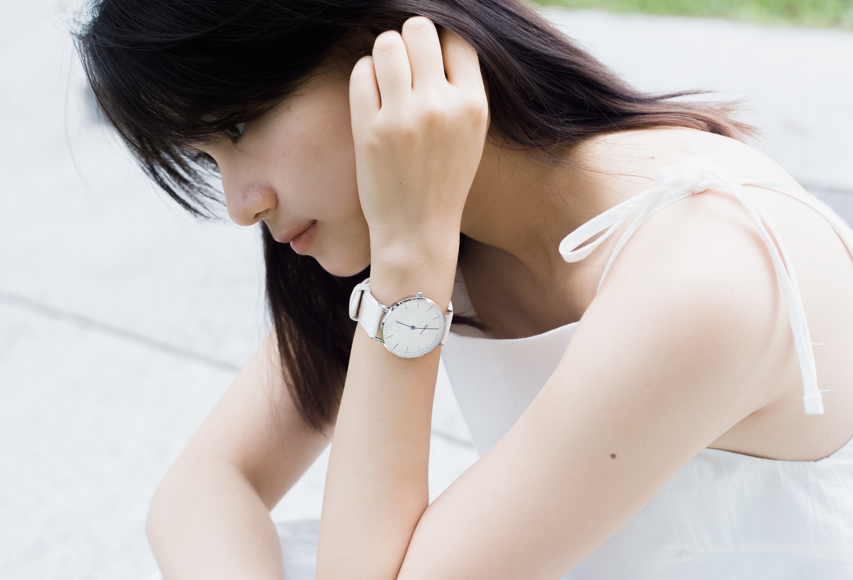 首先第一支腕錶是36mm的銀框白色錶盤,搭配上白色姬路皮革錶帶,這款戴上真的超有氣質~