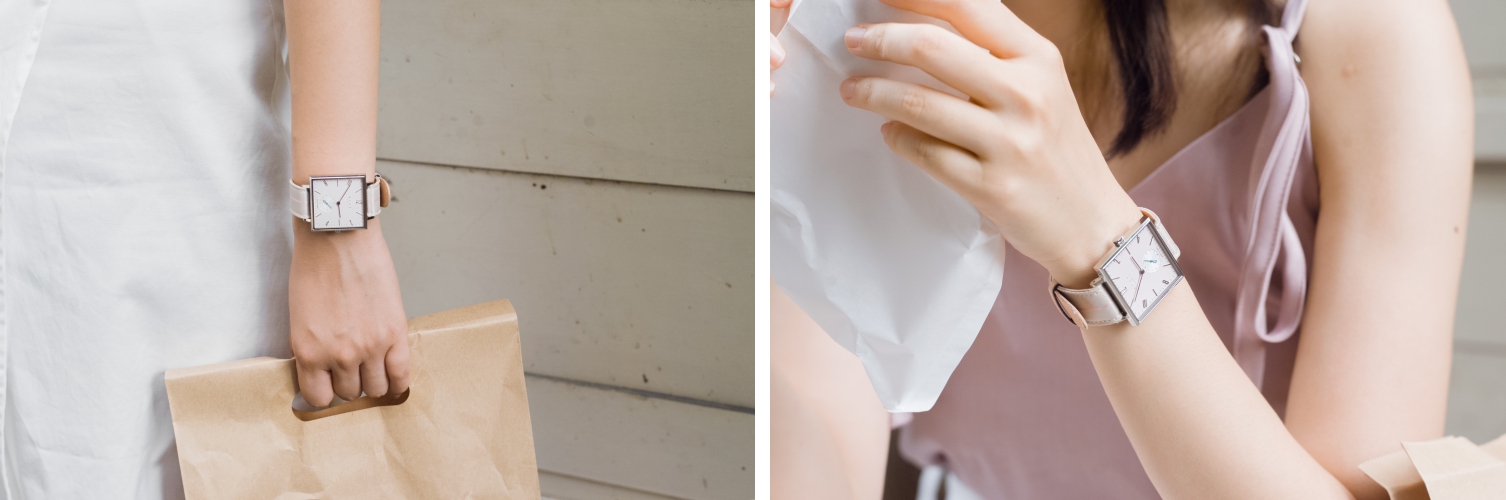 第二支是台中旗艦店獨家發售的錶款,少見的方形錶盤搭配日本天皇御用的傘布錶帶,整支錶超粉嫩繽紛,女生們看到絕對馬上融化!聽說這系列的錶款可是限量的呢,每一支都刻有獨一無二的序號,小編我就先留一支了!