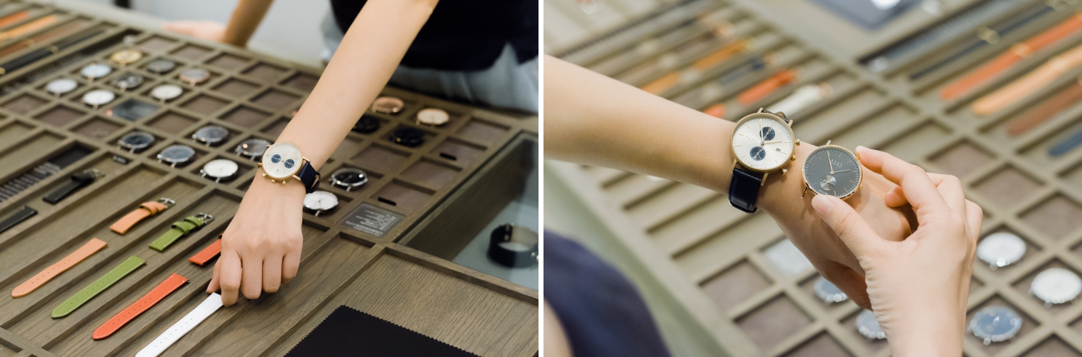 店內最醒目的就是正中央的開放式陳列大桌,上面放滿了錶盤和錶帶任君挑選,這就是Knot迷人的地方!讓每個人都可以享受DIY的趣味~搭配專屬自己的錶款!