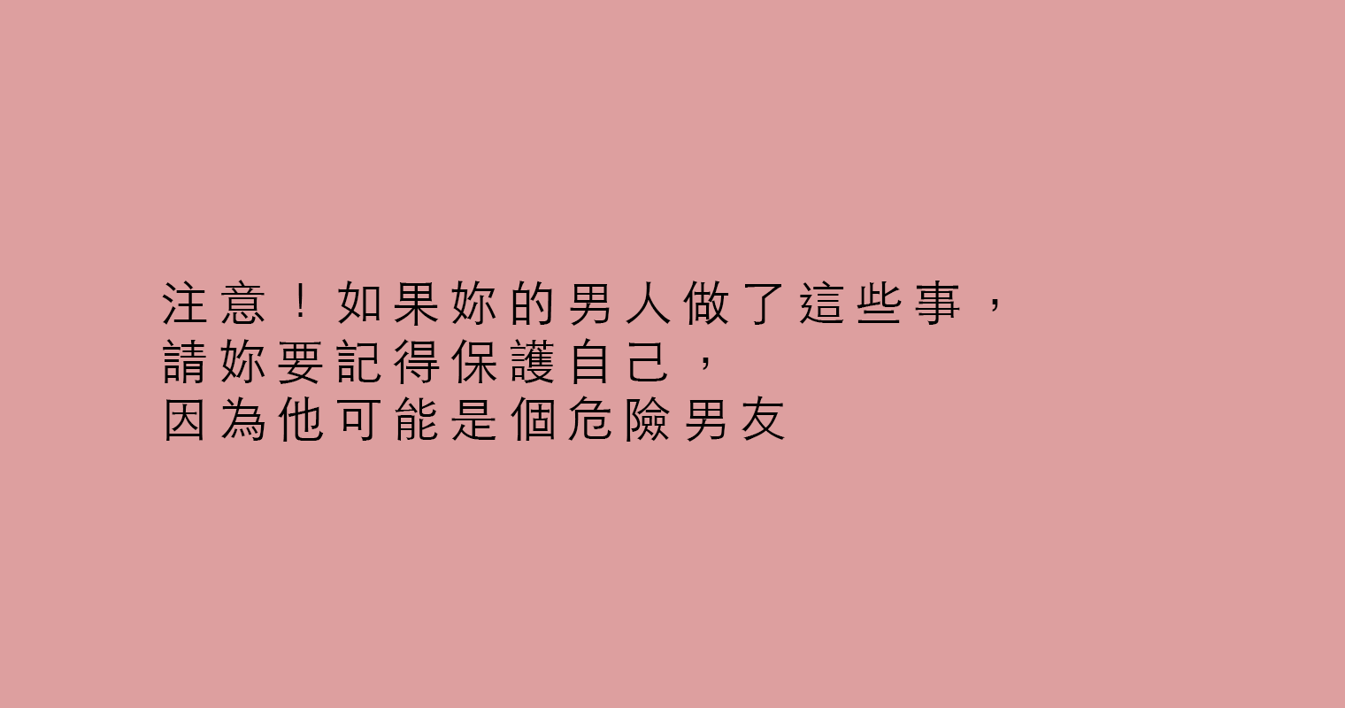 注意!如果妳的男人做了這些事,請妳要記得保護自己,因為他可能是個危險男友