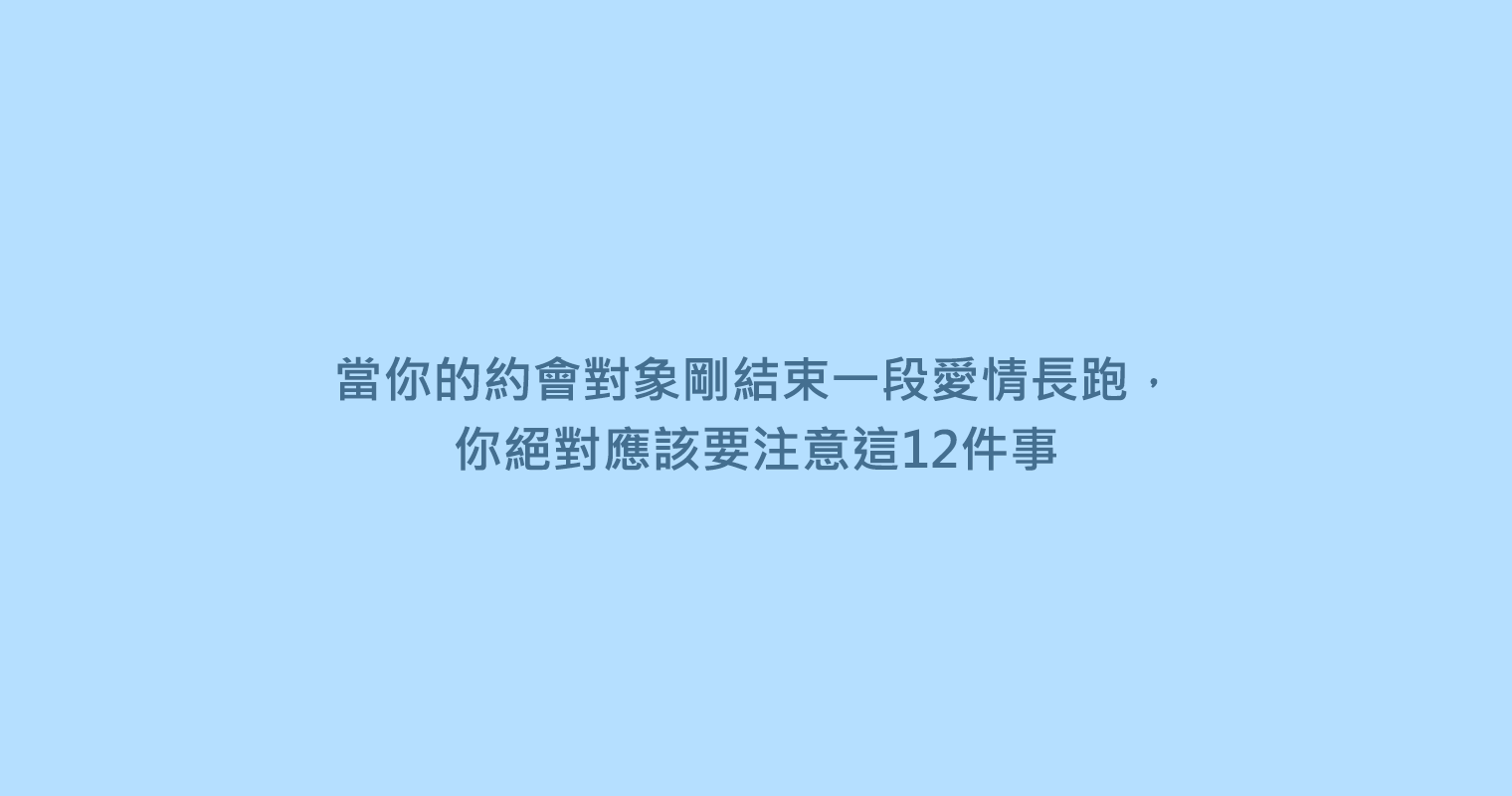 當你想跟你一個『剛結束愛情長跑的人約會』的時候,我想有些事情你必須先知道。畢竟對方有很長一段時間都和同一個人相處,難免已經養成一些習慣。現在就一起來看看,到底有哪些注意事項吧~畢竟現在才是最重要的啊!