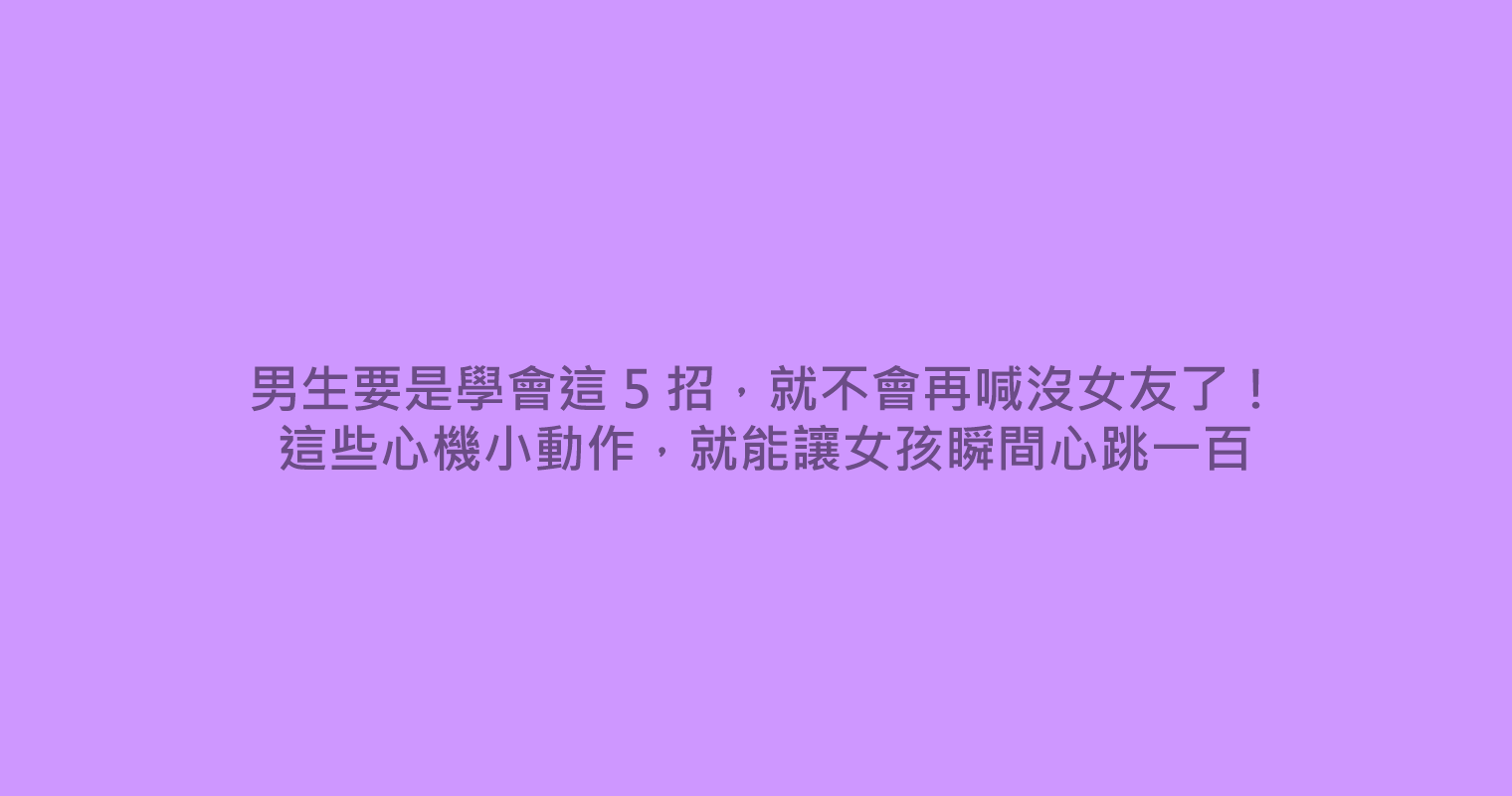 男生要是學會這 5 招,就不會再喊沒女友了!這些心機小動作,就能讓女孩瞬間心跳一百