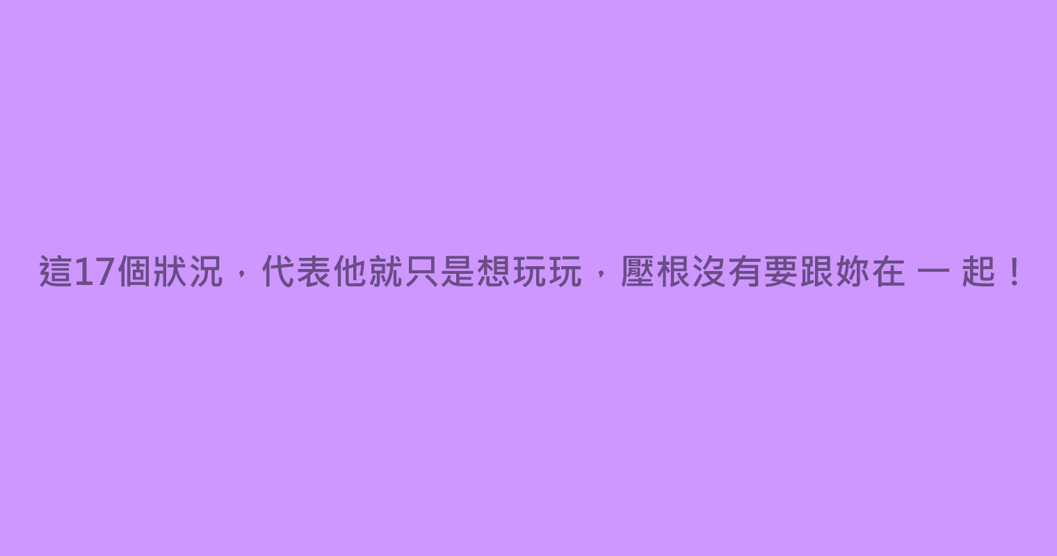 這17個狀況,代表他就只是想玩玩,壓根沒有要跟妳在 一 起!
