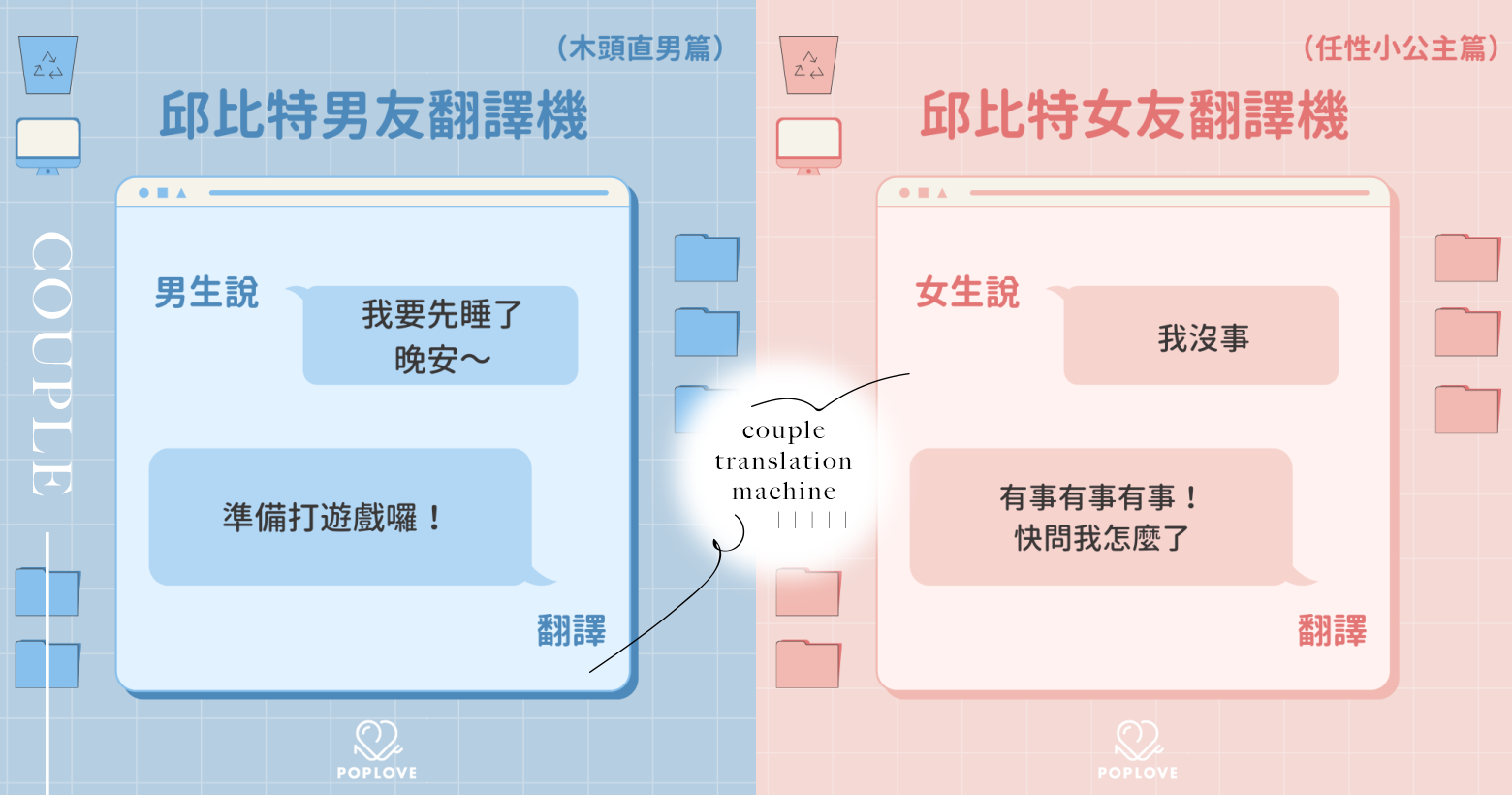 #poplove #互動 #交往 #女友翻譯機 #情侶 #情侶翻譯機 #愛情 #戀愛 #波波邱比特 #溝通 #潛台詞 #男女 #翻譯機 #聊天