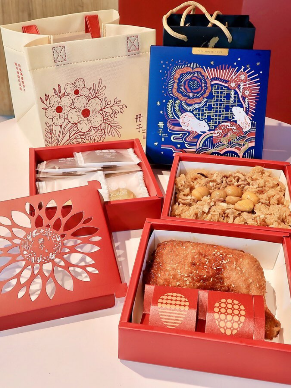 許多明星與媽咪愛用的彌月禮盒——冊子油飯,最美的就是它的包裝!會不時的推陳出新,做得精緻美麗,鼠年的寶寶也有專屬的樣式~特別之處是可以做甜鹹交織的雙層禮盒,連提袋都做得好別緻,難怪會有這麼多人推薦!