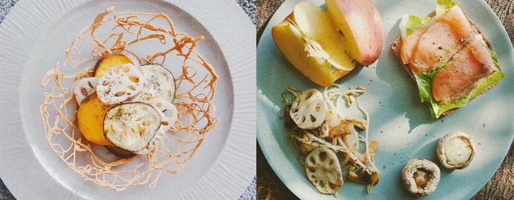 煙燻鮭魚吐司、蘋果……,料理簡單但擺盤卻讓人食慾大開。
