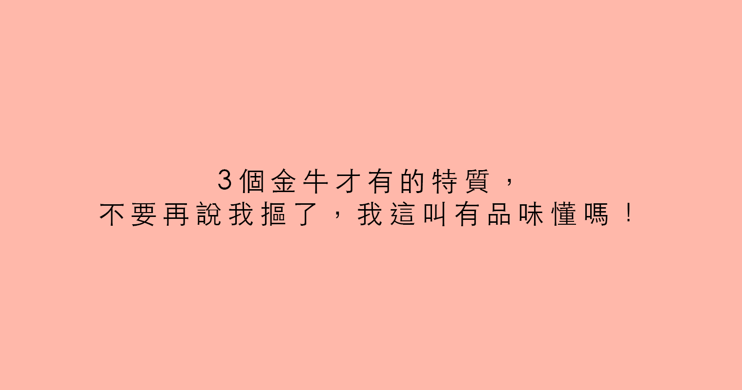 3個金牛才有的特質,不要再說我摳了,我這叫有品味懂嗎!