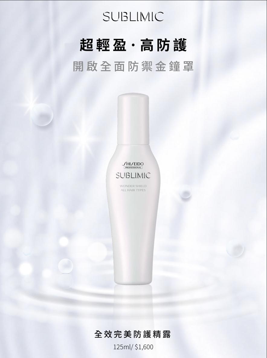 作為亞洲美容保養集團的領導先驅,資生堂美容科研中心潛心研究,在全新洗護系統 Sublimic芯之麗中納入『損害防禦』的概念,並推出貫穿全系列產品的超級明星商品「全效完美防護精露」— 關鍵突破性專利「全能防禦科技」,如同秀髮的隱形盾牌,能提供長效延續的多重保護,有效抵擋 6大環境損害因子;水精露輕盈質地,不黏膩、無負擔,輕輕噴灑即可幫秀髮罩上全方能防禦罩,完全就是女孩必備的夢幻逸品!