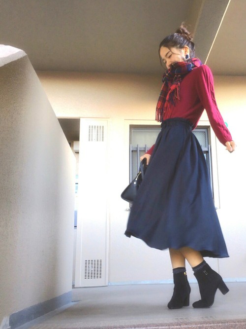 # 紅色針織毛衣做主調
