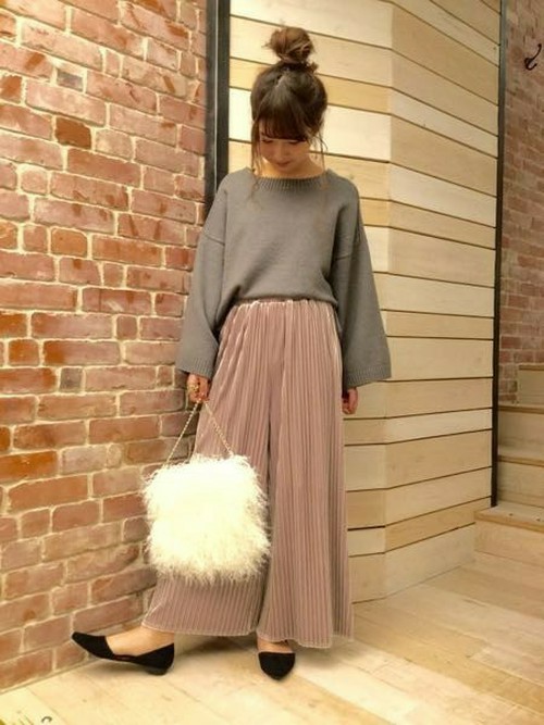 選擇這一季秋冬大熱的粉色下身單品上身在簡約搭配素色上衣,尤其是灰色上衣搭配粉色褲裝,不僅時尚與和諧感完全滿分而且素色上衣還能協助突顯粉色褲子讓整體裝扮更加搶眼!