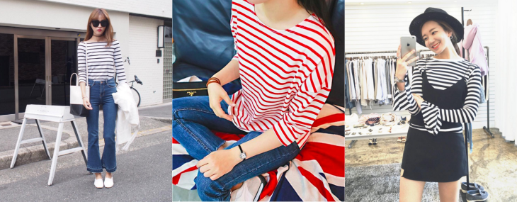 藍x白條紋是最基本的海軍風元素,進階的搭配可選擇白、藍、紅三色的條紋,高階搭配就是以三色為基本配色在不同單品,更可以加上領結做點綴搭配唷,搭配中千萬別忘記腳上也可以選擇海軍風單品的藤編鞋喲