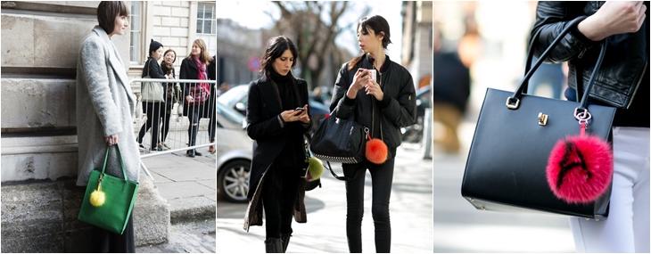 換季不只要換包,時尚圈對於玩包每季是不斷進化的,先前有大包+小包,又流行皮革貼紙好一陣,秋冬就要全面瘋裝飾。尤其Fendi魔魔系列的皮草吊飾一出,讓時尚人陷入瘋狂,不管揹的大包小包,全都掛上吊飾,搭配重點在於掛飾要夠大、夠有趣,搶眼度足以讓包包成為配角。總之,包包無聊,掛飾就要超大膽,這種小兵立大功,可是本季最重要的潮流之一噢(筆記~)。