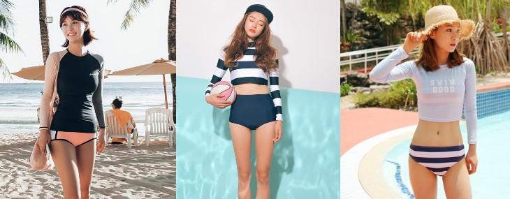 不敢穿性感泳裝的女孩們,那就試試這樣的長袖泳裝,依然可愛.