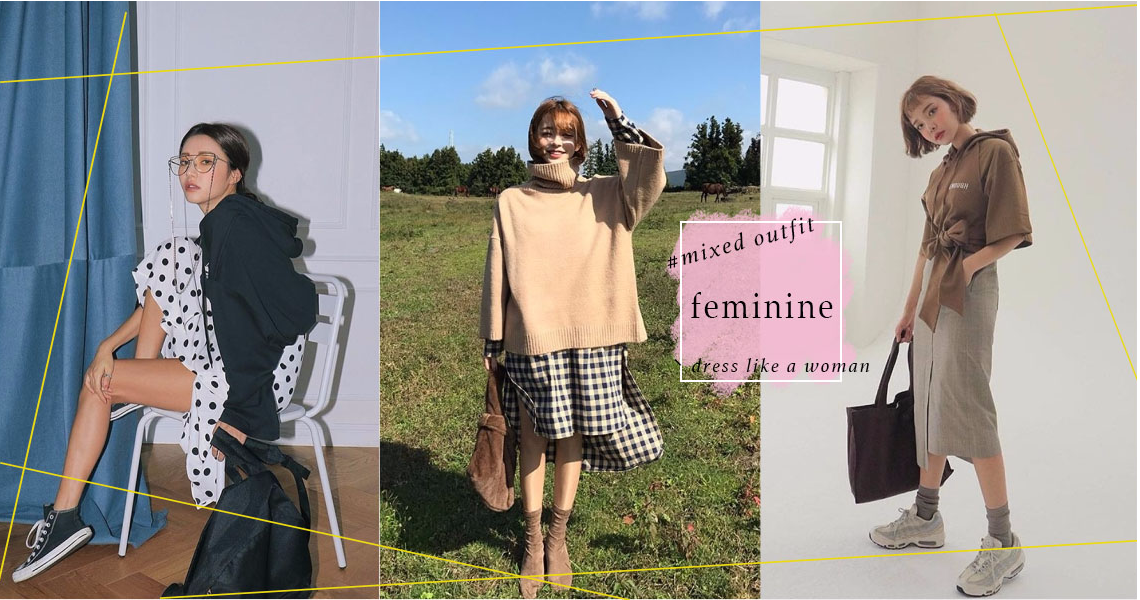 帽T應該是每個女生衣櫃一定都會有的基本款單品吧!其實帽T不只能拿來搭配牛仔褲,中性風格的帽T搭配上優雅、有女人味的長裙,就能營造出不會過於甜美也不會過於成熟,俏皮又有個性的混搭風喔~平常日搭配球鞋,不管是穿去上班或是上課都很適合,到了假日就可以搭配跟鞋、靴子,和男友約會去啦!