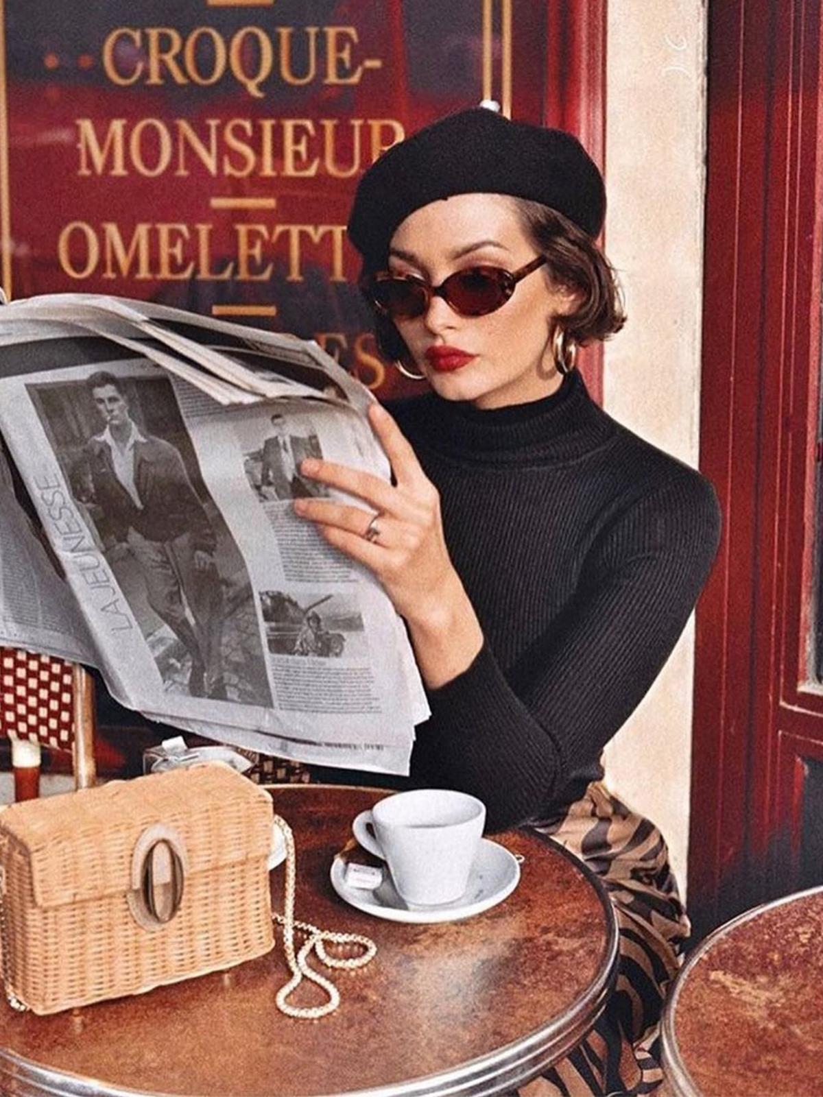 白色寬鬆的亞麻襯衫,內搭性感黑色法式bralette,又或是一件黑色高領佐以豹紋緞面短裙,時而慵懶寬鬆、時而展現身材曲線的穿搭法則,讓人看得心癢癢!