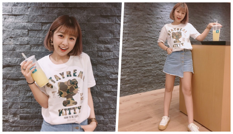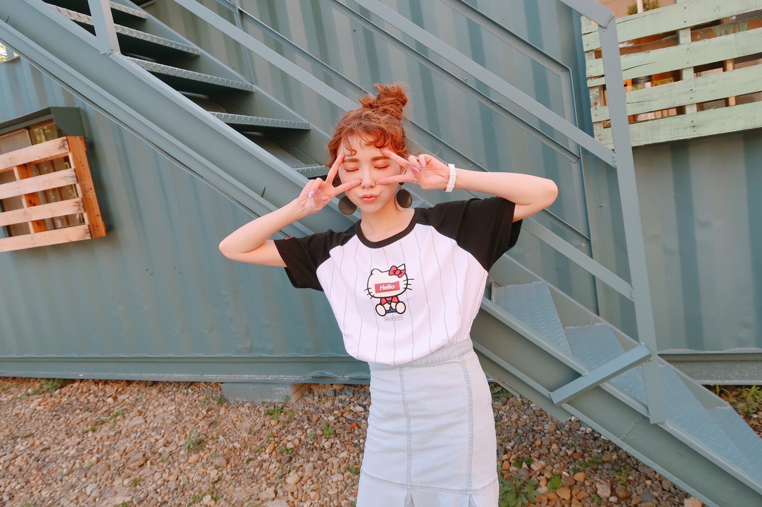 這種迷彩+KITTY的素T設計,下身搭個牛仔單品在配個現在很紅的餅乾鞋就是簡單又有型的絕配組合啦~