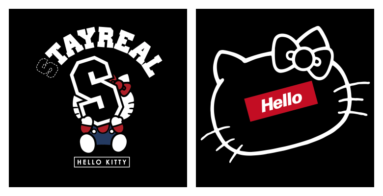 而這款則是以大大的KT佈滿正面,再壓上HELLO字樣,透過字母穿出不一樣的Stayreal也是潮流中的經典啊~