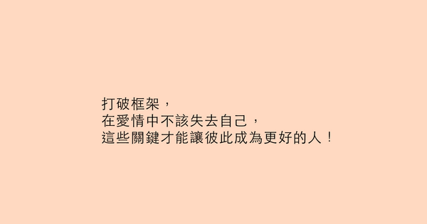 打破框架,在愛情中不該失去自己,這些關鍵才能讓彼此成為更好的人!