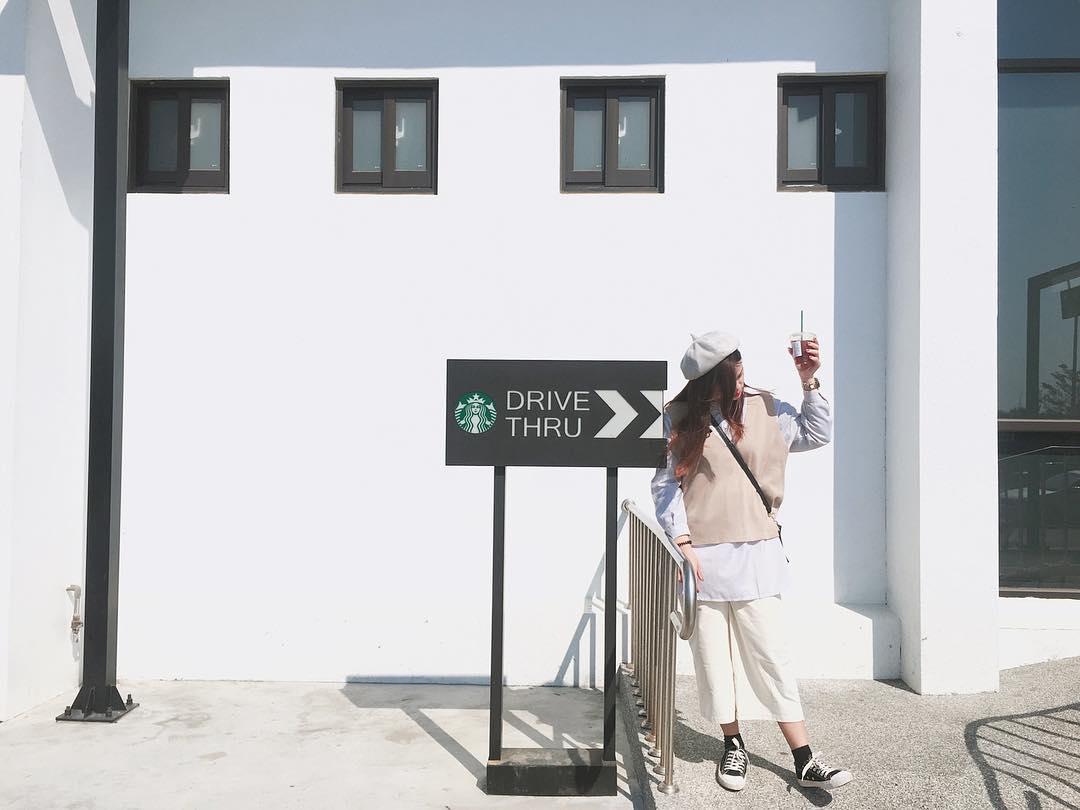 真的怎麼拍怎麼像在國外,ㄈ字型的建築物,天氣好的時候採光超讚,聽說是整個亞太地區,車道佔地最大的一間,大家再熟悉不過的星巴克,居然也有長這樣的啊~是說最近漲價的消息吵得沸沸揚揚的,如果每家星巴克都那麼美,買杯變貴的咖啡享受一下悠閒午後也是值得吧?而且還可以拍100張美照啊!