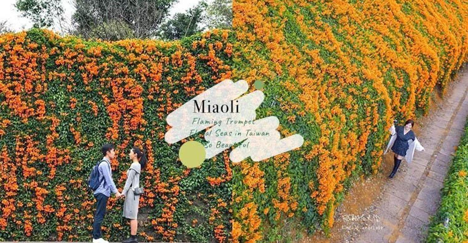每年的一月中下旬起,苗栗銅鑼環保公園的炮仗花便開始盛開,這裡同時也是最受歡迎的炮仗花賞花點。每當花期時,亮橘色的花朵齊放,延綿近一公里十分壯觀,剛好今年過年來得特別早,春節到這裡走走算是非常應景啊!