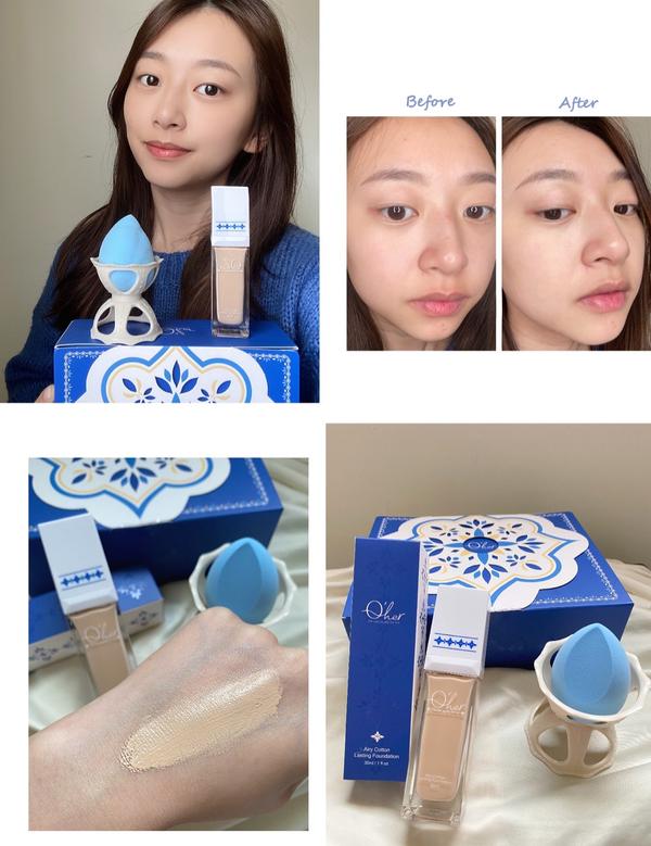 Q’her 清新藍白花磚設計地中海風植感粉底液