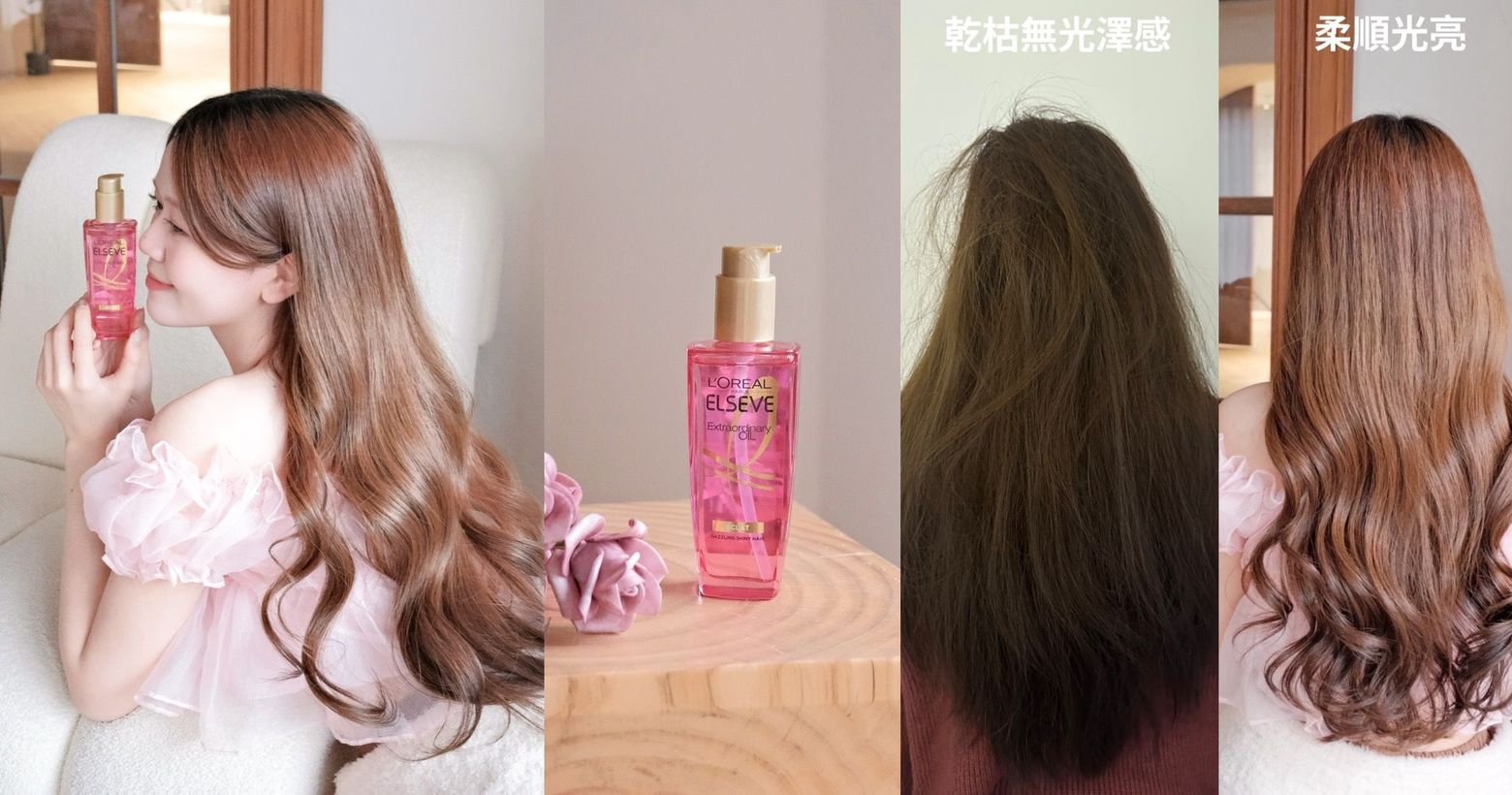 2024必備超柔順NO1熱銷髮油推薦巴黎萊雅金緻護髮精油玫瑰精華~春日戀愛感滿滿!輕盈裸感質地頭髮24H極致柔順亮~