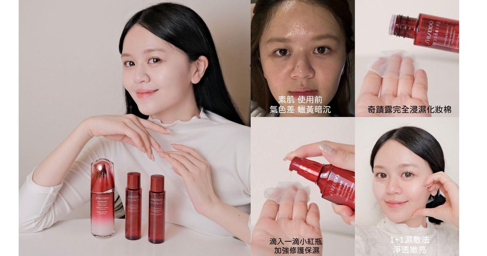熬夜臉黃透亮保養救星!資生堂東京櫃No.1小紅瓶奇蹟露「1+1奇肌濕敷法」紅色活酵超導奇蹟露~紅妍超導循環肌活露~