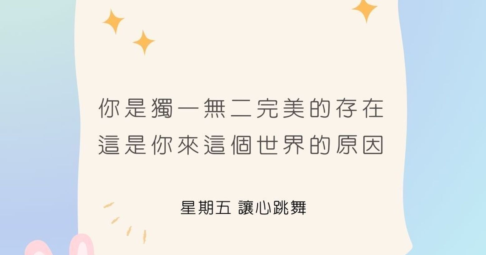 #星期五讓心跳舞 「你是獨一無二完美的存在 這是你來這個世界的原因」—溫蒂