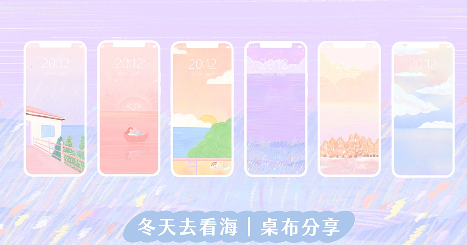 冬季限定!「讓我們一起去看海!6款大海桌布!等你來下載。」溫暖的筆觸!療癒系桌布分享分享