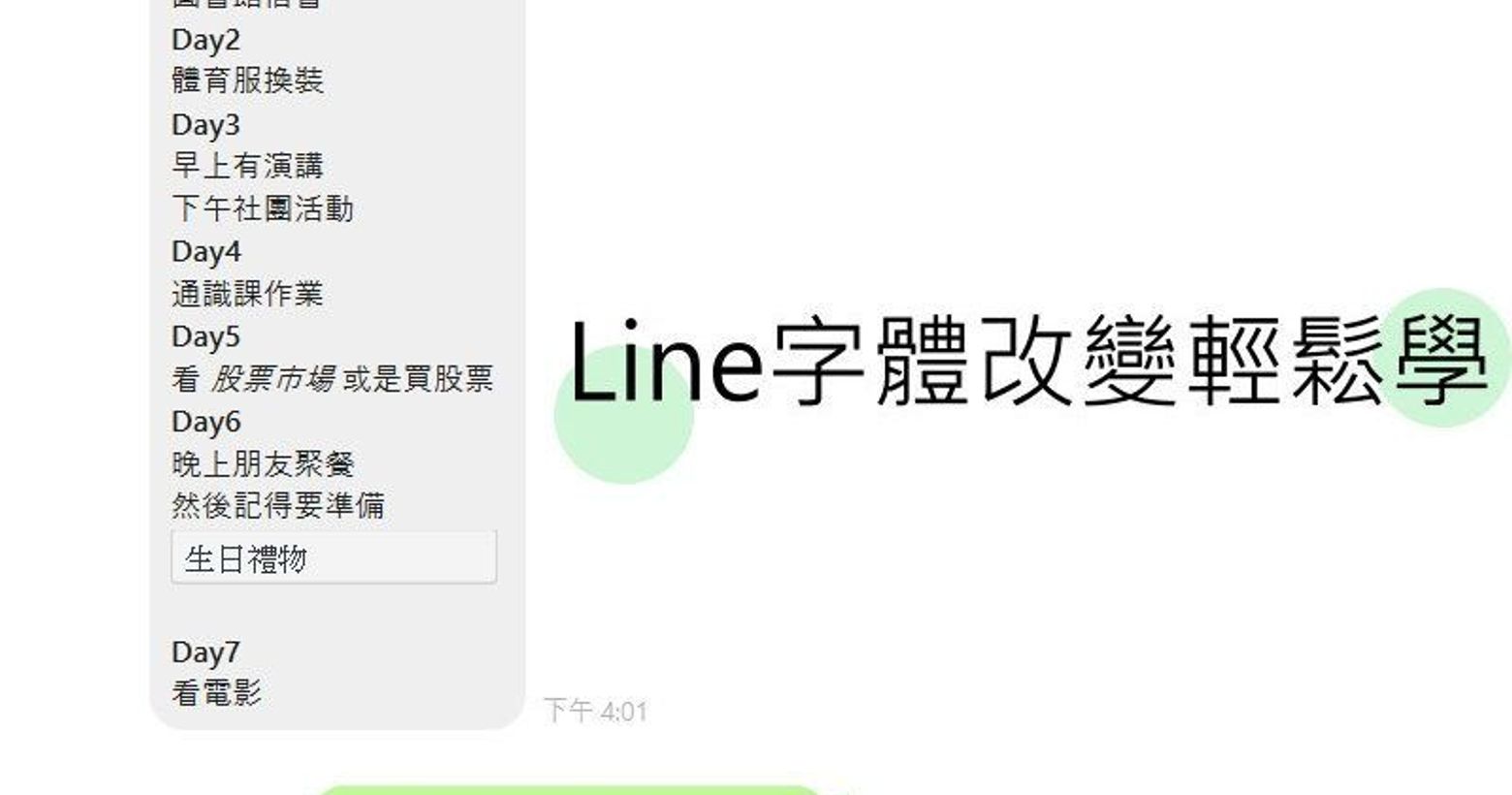 Line字體改變輕鬆學,斜體、粗體、方框以及紅字方框簡單就上手